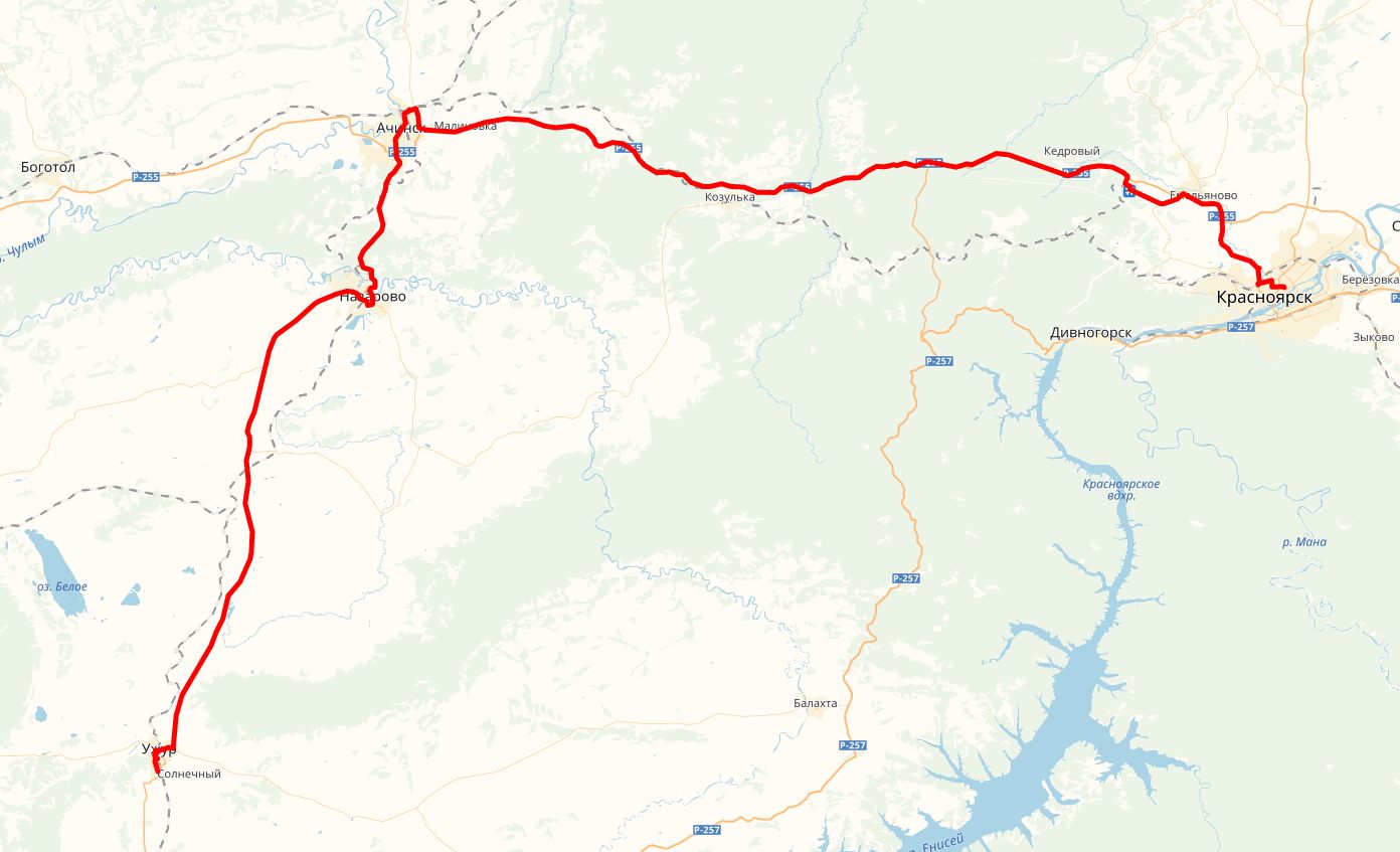 ежедневно с временем отправления от автовокзала г.Красноярска в 18:30 (последний рейс отправлением от Красноярска до Ужура)